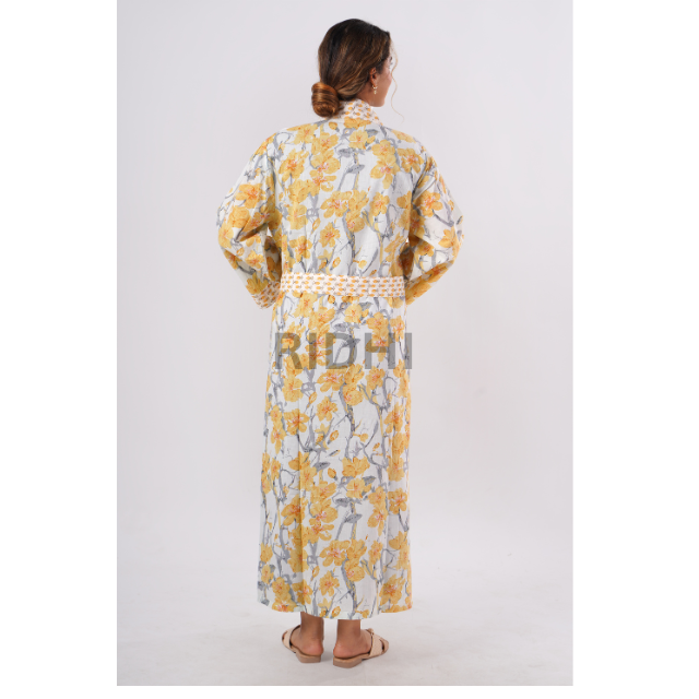 Nombre del Producto:Kimono de algodón amarillo maíz cremoso