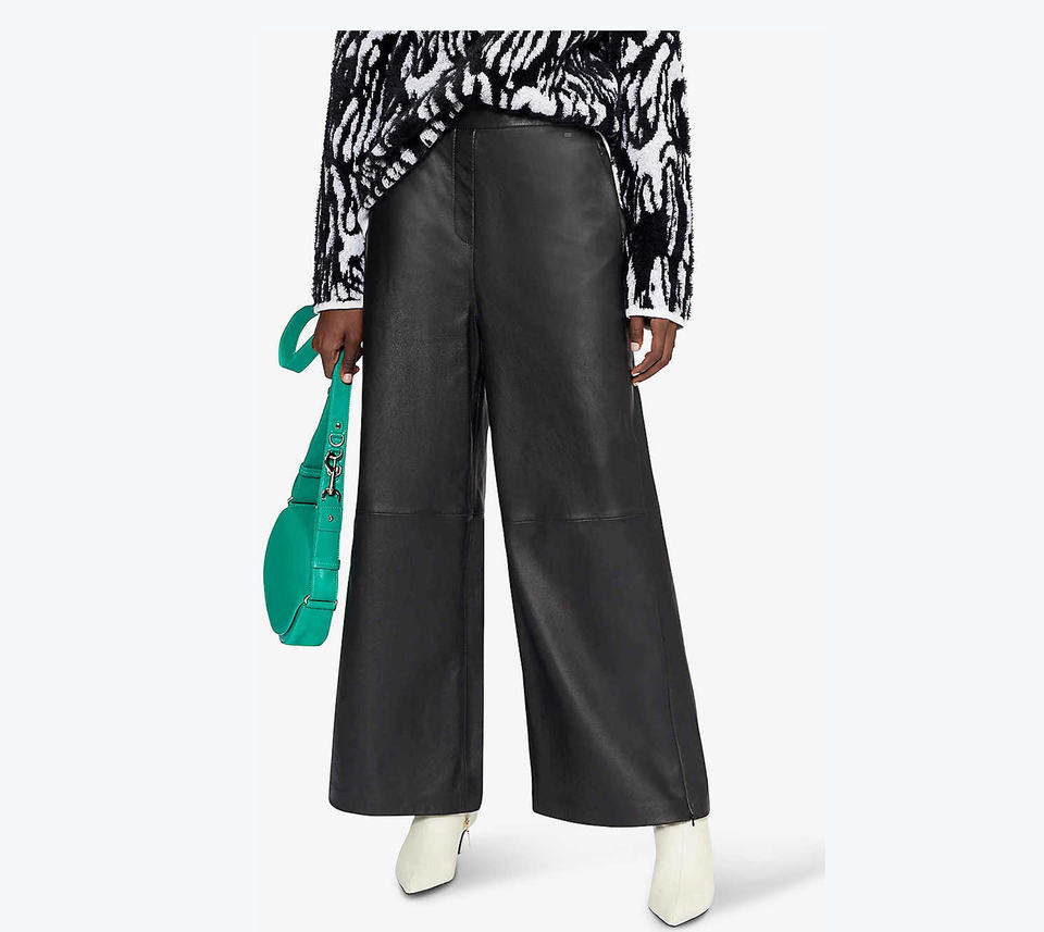 Pantalones Casuales de Mujer al por Mayor, Moda Otoño Invierno, Cintura Alta, Gruesos, Negros, de Cuero Auténtico, con Patrón de Botones Tejidos a Crochet, Transpirables