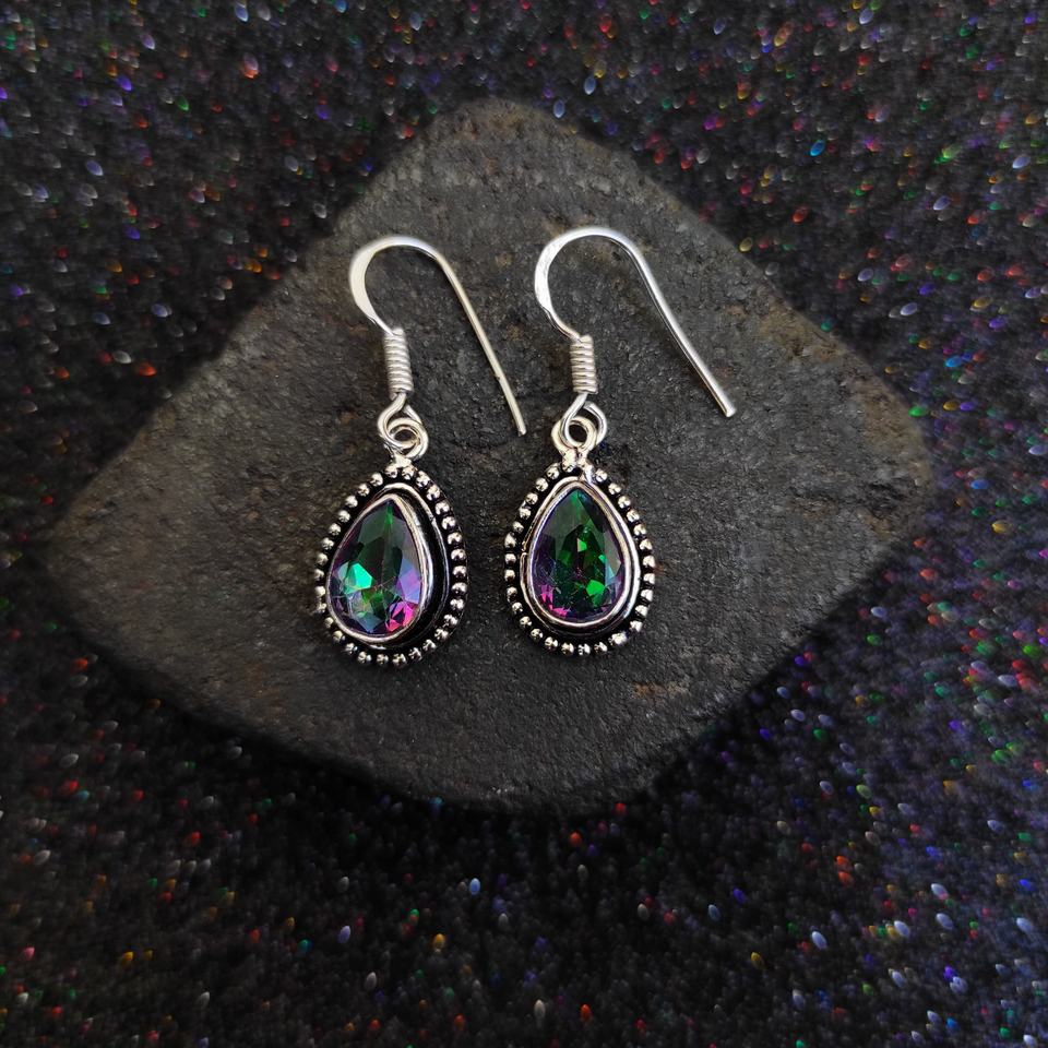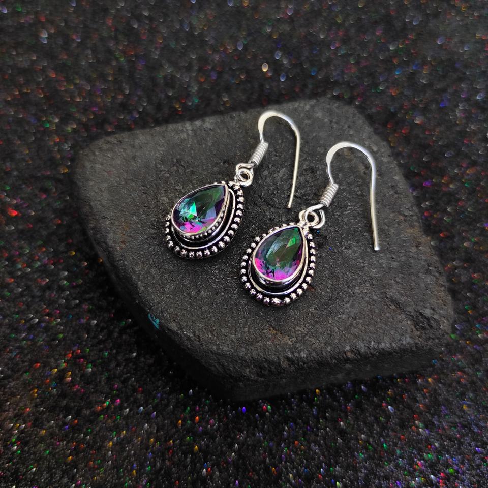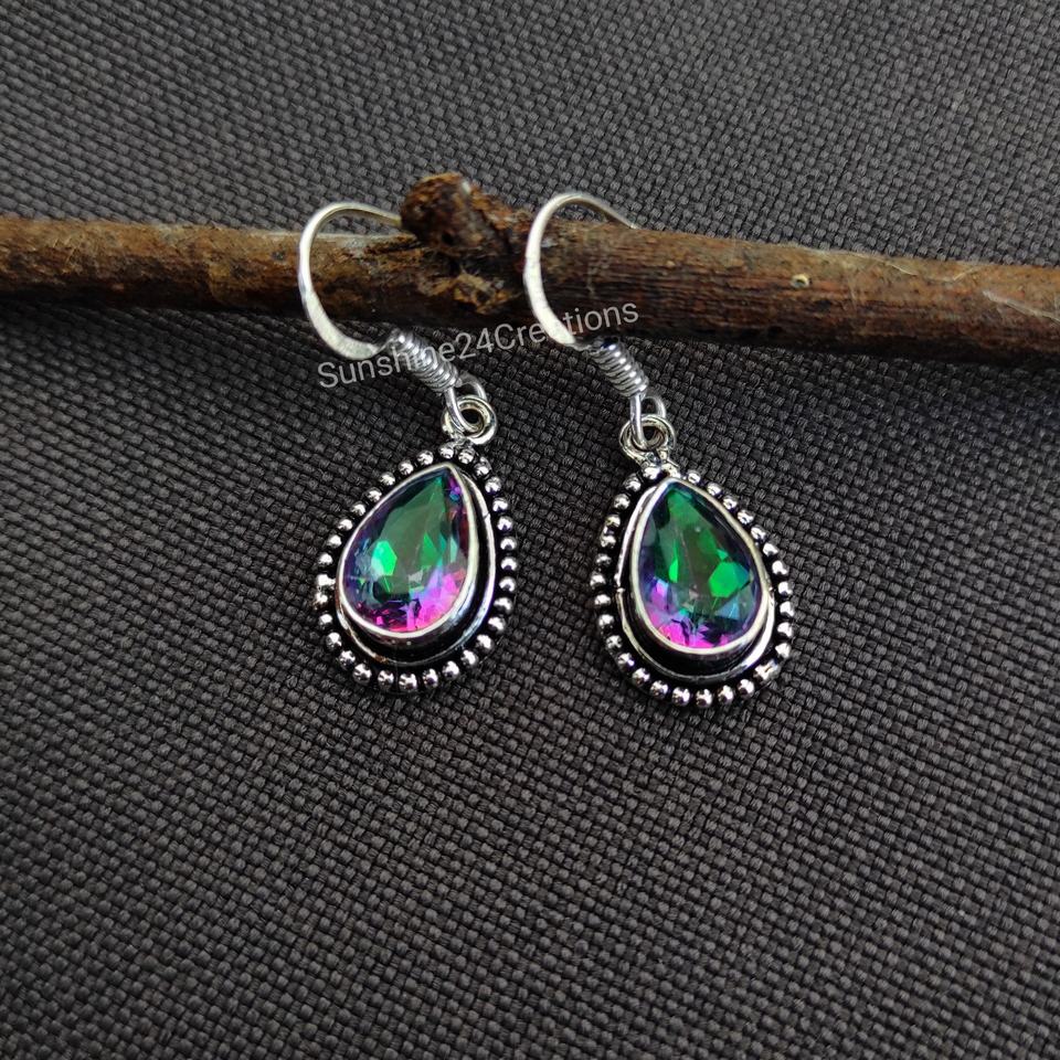 Pendientes de gota de latón hechos a mano para mujer al por mayor, pequeñas piedras preciosas de topacio místico, Perla chapada en oro, estilo bohemio, fábrica de compromiso
