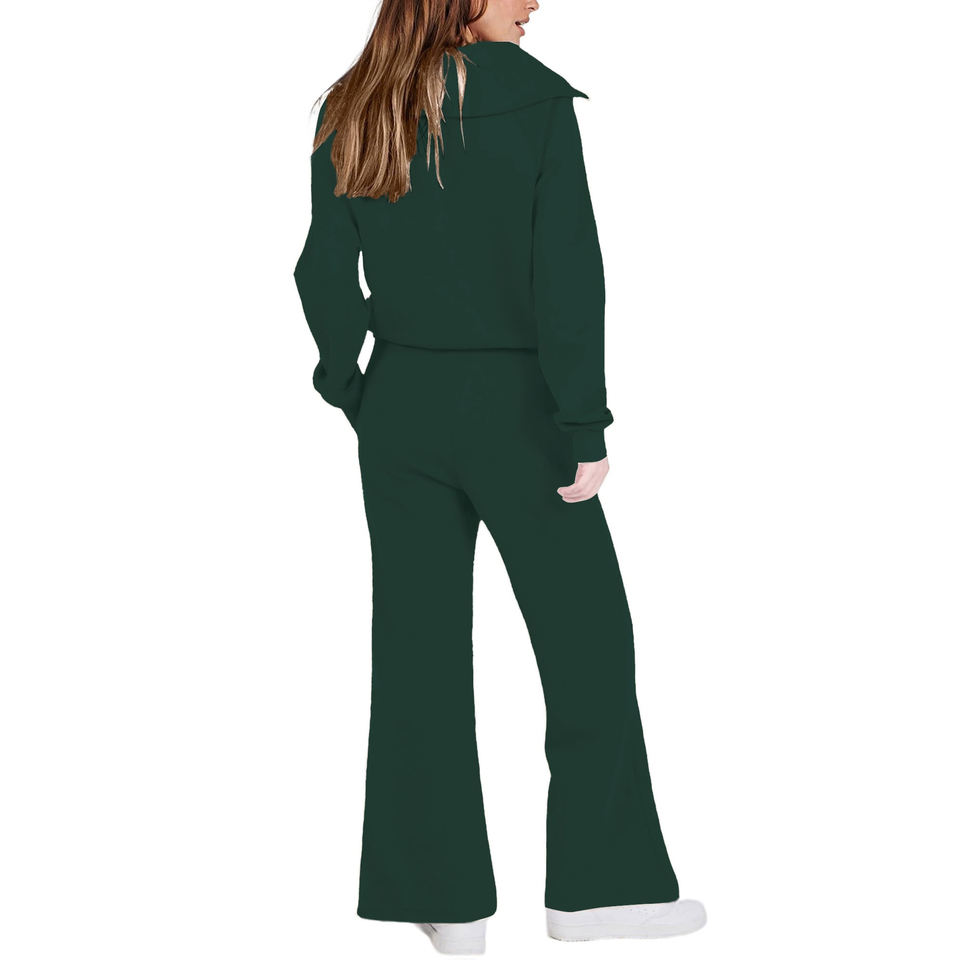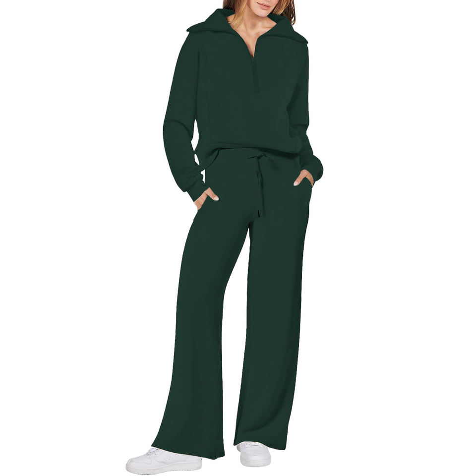 Venta al por mayor de las mujeres de invierno SweatSuit logotipo personalizado cremallera sudadera con botón de decoración y bolsillos de lana conjuntos de las mujeres