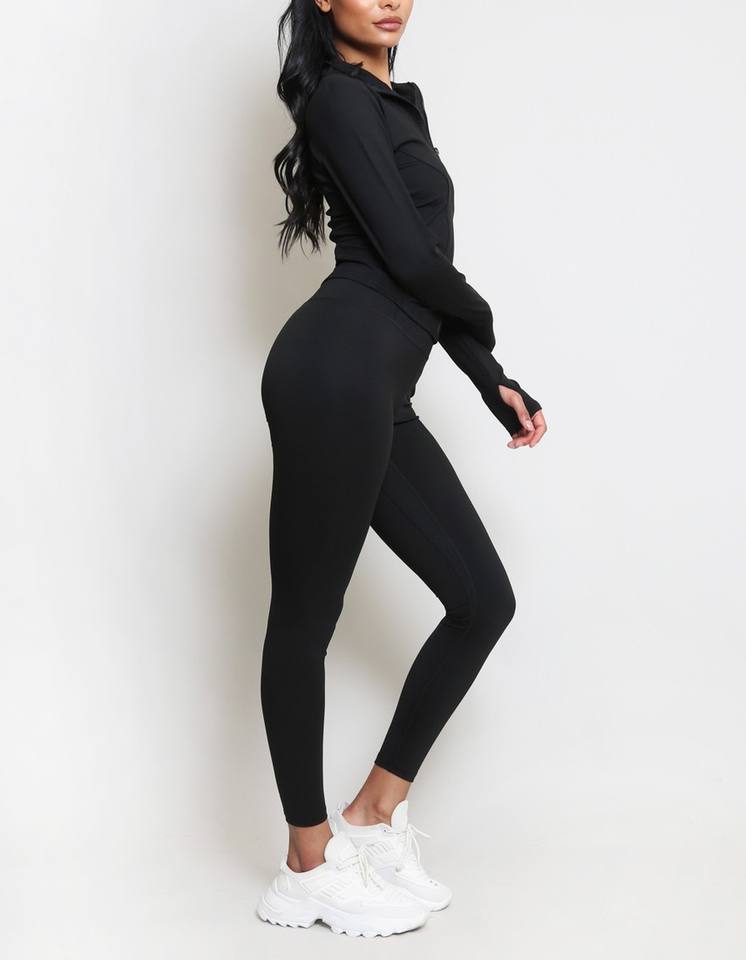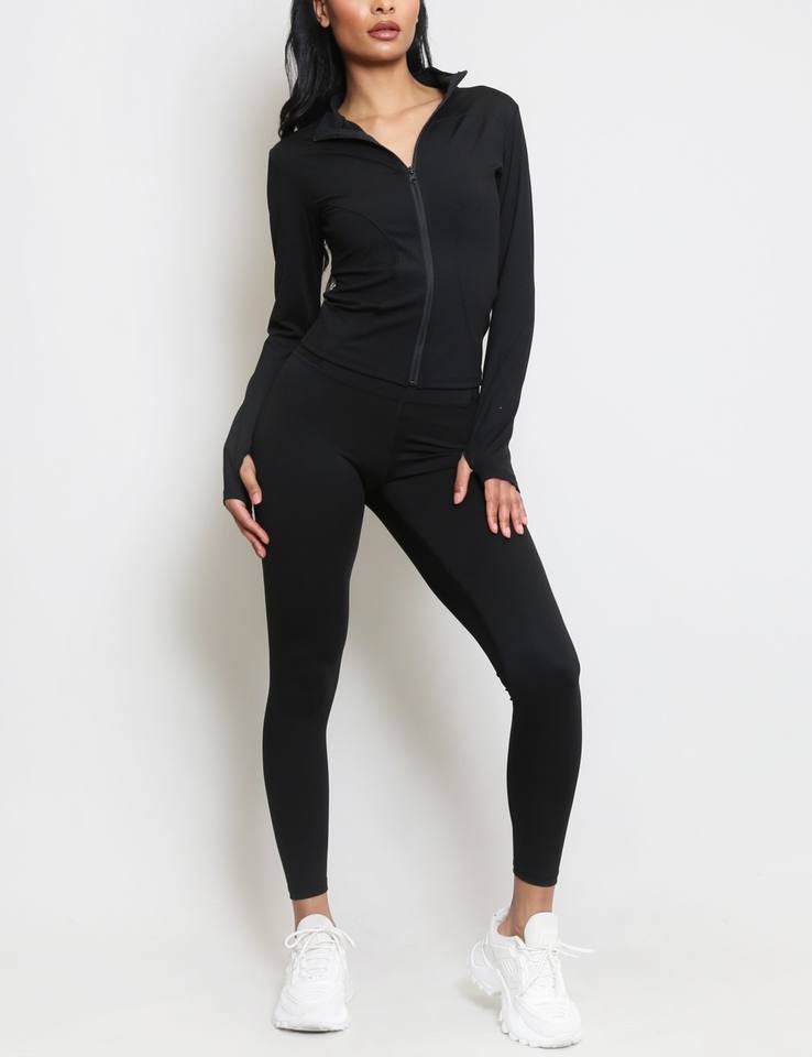 Product Name:Zip Front Long Sleeve Top And Legging Gym Set
