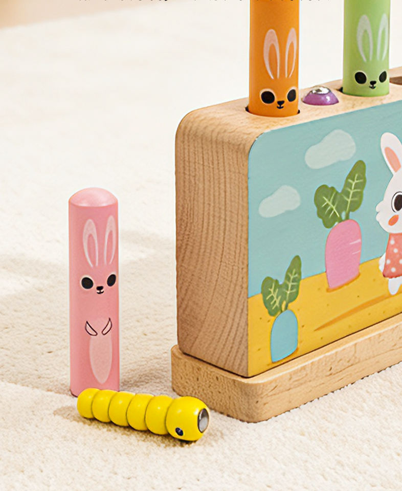 Juguete Educativo Montessori de Madera al por Mayor, Juguete de Conejo con Palo para Saltar, Juego de Aprendizaje Preescolar para Niños