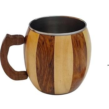 Venta al por mayor taza de madera con asa Ideal para acampar senderismo y al aire libre taza de madera tallada para bebida caliente y fría