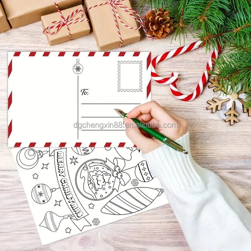 Venta al por mayor de tarjetas postales de actividades navideñas para colorear tarjetas de felicitación de Feliz Navidad colorea tu propia postal para amigos niños
