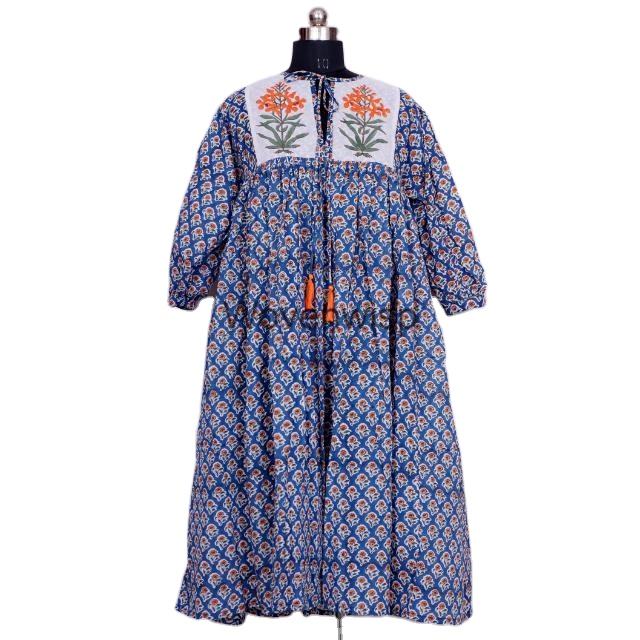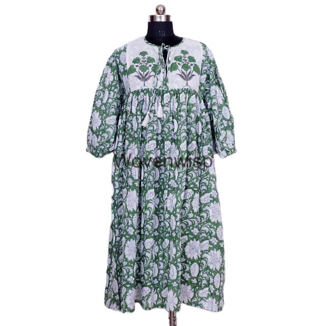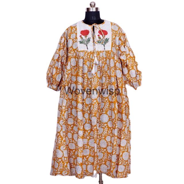 Venta al por mayor y fabricación a precio bajo, vestido de 6 colores, vestido estampado Floral con bloque de mano, regalo para el día de la madre, vestido de fiesta