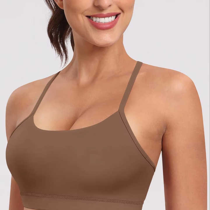 Sujetadores deportivos acolchados cómodos para mujer al por mayor con diseño de espalda en Y para tops de entrenamiento de yoga