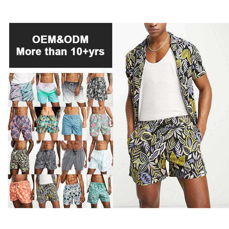 Pantalones cortos de playa elásticos de 4 vías con logotipo personalizado de alta calidad personalizados al por mayor, pantalones cortos impresos por sublimación para hombre, envío DDP