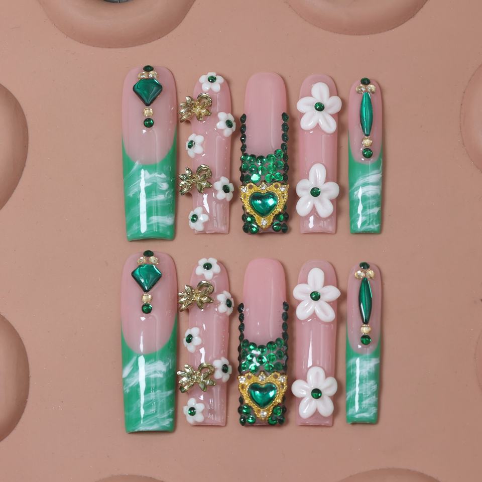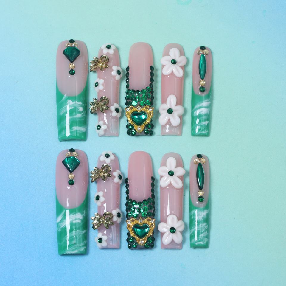 Venta al por mayor de pegatinas de uñas acrílicas de alta gama, hechas a mano, uñas postizas cuadradas largas de cobertura completa y uñas postizas degradadas de alta calidad.