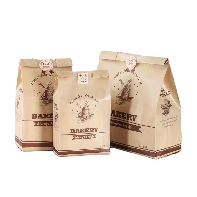 Venta al por mayor logotipo Sharp V ventana inferior Baguette francés Caterpillar pan panadería bolsa de papel a prueba de grasa