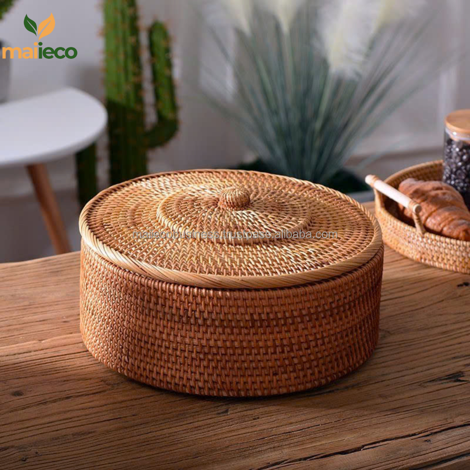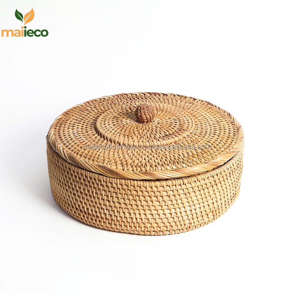 Cesta de Almacenamiento Redonda de Ratán al por Mayor con Tapa, Cestas de Mimbre, Organizador, Estante, Librería, Cajas, Contenedores para Almacenamiento en el Hogar