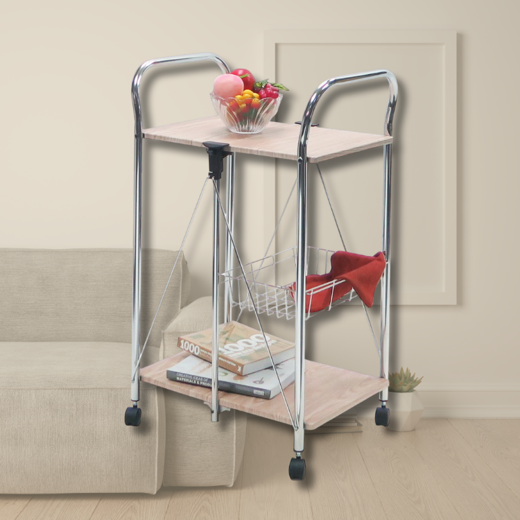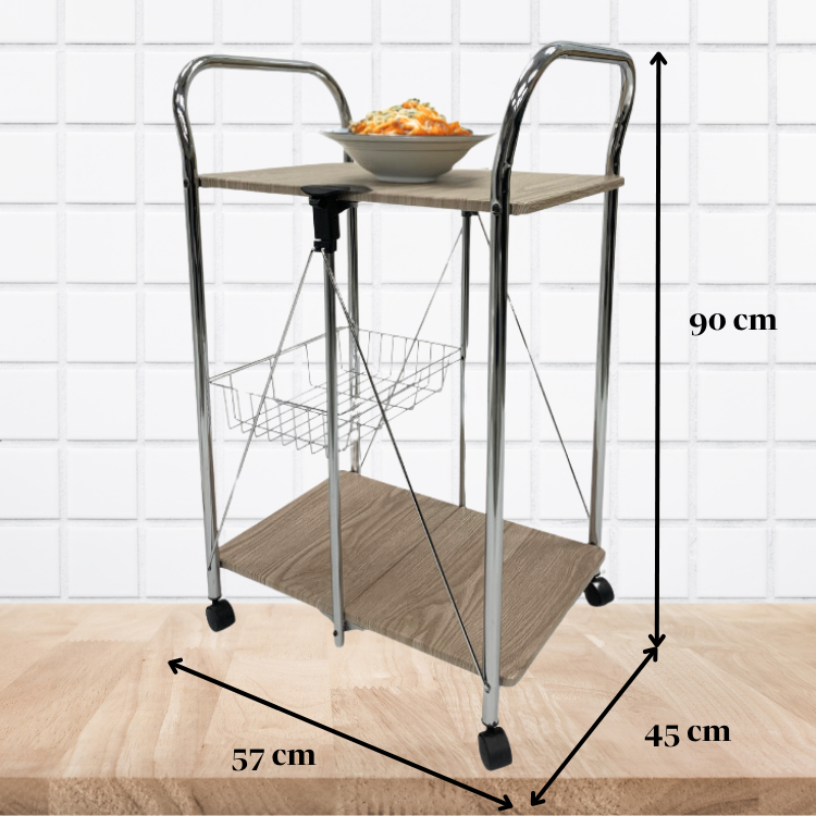 Nombre del producto:Carretilla de madera al por mayor de la cocina del tablero de dos capas con La cesta