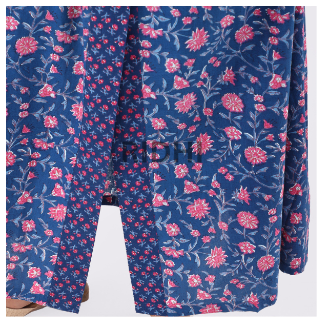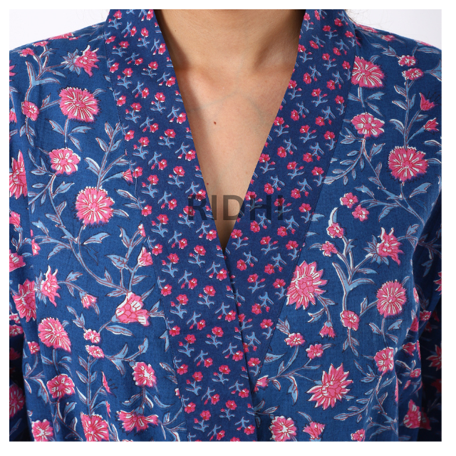Nombre del Producto:Kimono azul índigo con estampado floral rosa