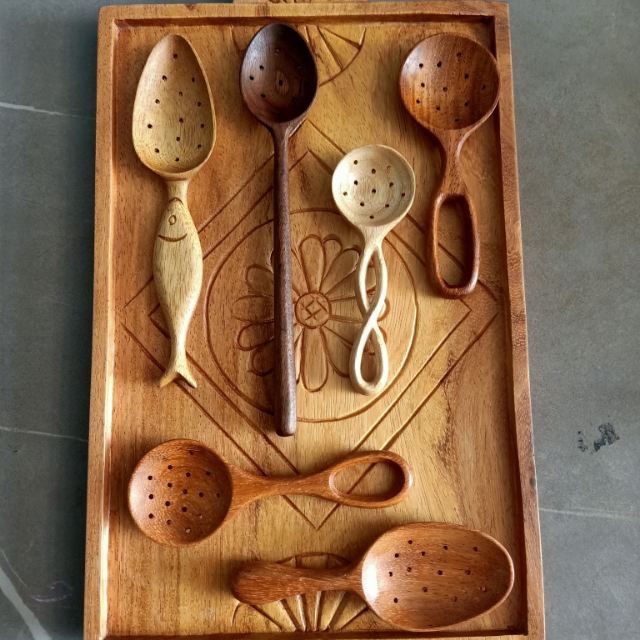 Cuchara de Servir de Madera Hecha a Mano con Mango Largo Estilo Vintage, Forma de Hoja, Utensilios de Cocina Ecológicos de Vietnam, Mayorista