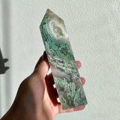 Mayorista y fabricante Piedra natural Druzy Moss Agate Gran torre de cristal Curación Personalizada 4 Varita de Punta facetada para la venta