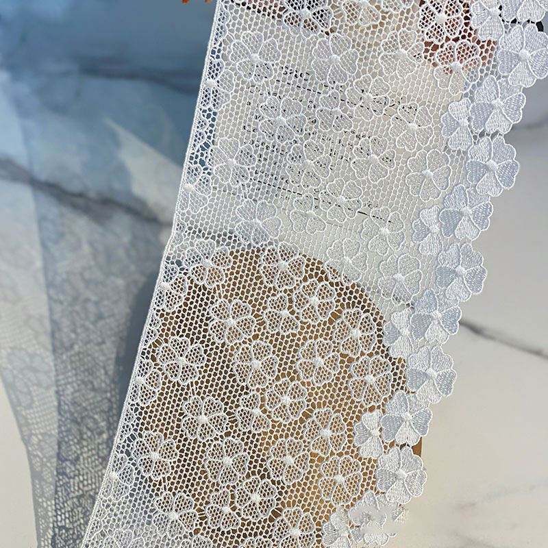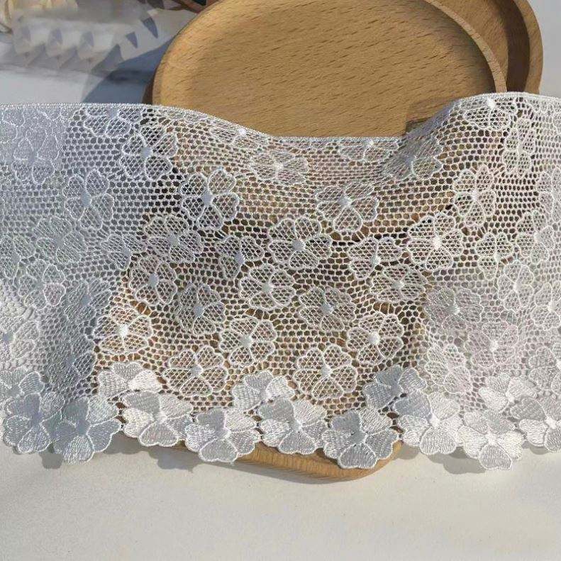 Tela de Encaje Elástico Estrecho de Algodón Ecológico de Nuevo Estilo para Vestidos de Mujer, Bordado, Ancho Personalizado, Venta al por Mayor