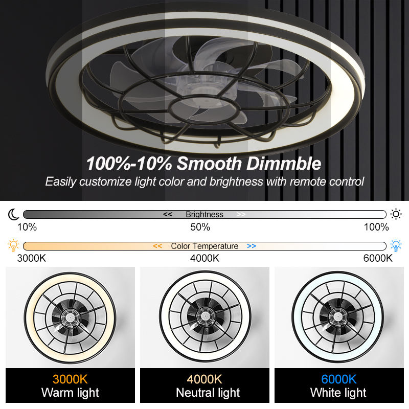 Ventilador de Techo de Motor de CC de 6 Velocidades Reversible con Luz LED Regulable, Control Remoto, Montaje Empotrado para Dormitorio, Diseño Moderno, Venta al por Mayor