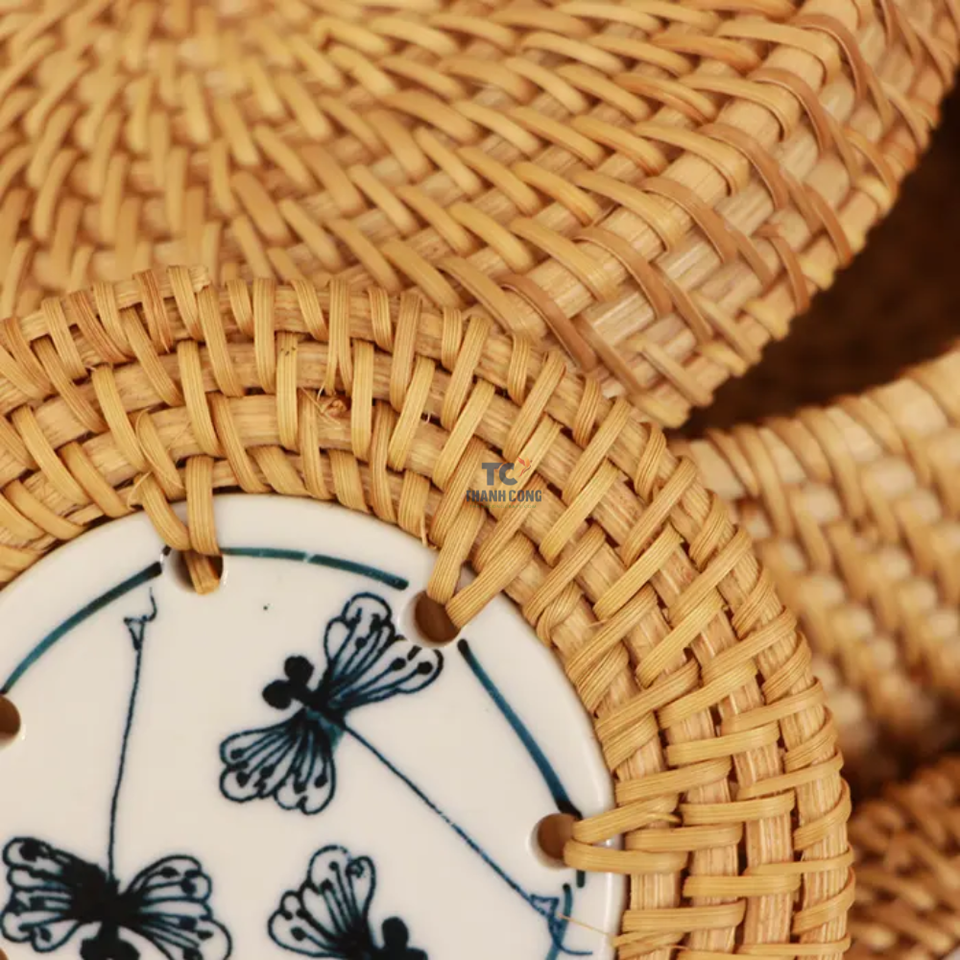 Posavasos De Ratán De Cerámica Con Los Titulares
