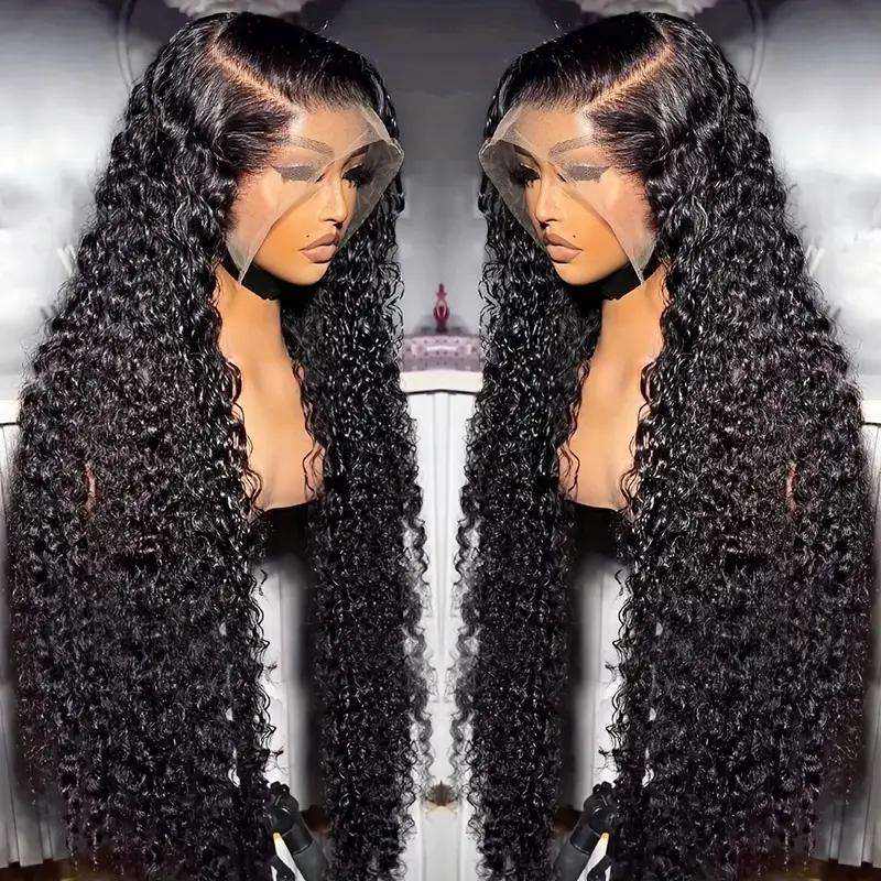 Venta al por mayor HD transparente brasileño Remy Peluca de cabello humano 30 pulgadas onda de agua profunda 13x4 13x6 rizado encaje frontal pelucas sin pegamento para mujeres