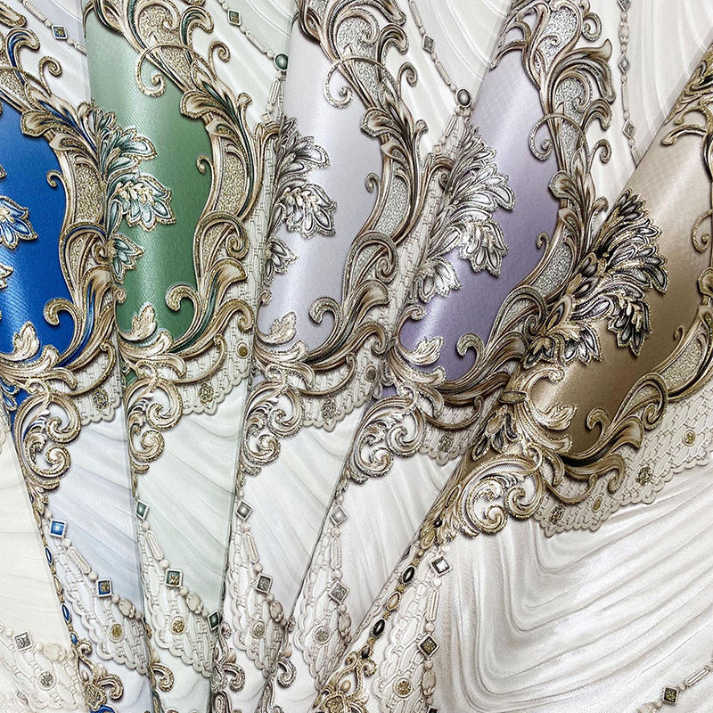 ¿Por qué se utiliza el papel tapiz en relieve 3D con estilo de corte dorado floral europeo en salas de estar, villas y fondos de decoración del hogar?