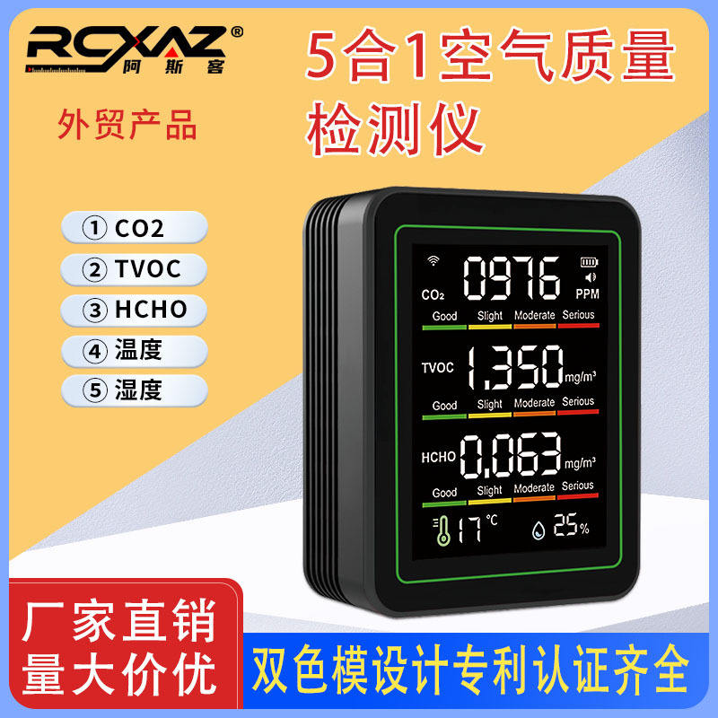 WiFi 5 In 1 Air Quality Monitor CO2 TVOC HCHO Temperature Humidity Sensor LCD Display Indoor Home Use
