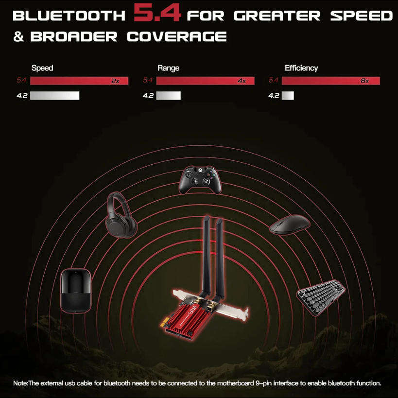 Adaptador WiFi 7 PRO PCIe Inalámbrico, Tarjeta WiFi Tribanda con BT 5.4 para Intel BE200NGW Wifi7 2.4G/5G/6GHz Win 10/11 64bit