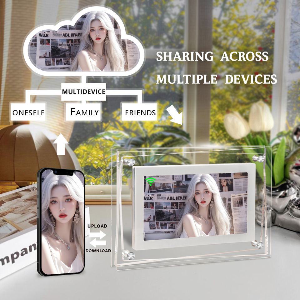 WiFi/APP 100% Protección DE PRIVACIDAD Marco de fotos digital de 4GB Álbum electrónico de escritorio 1280P IPS Foto/Video/Música