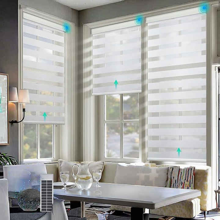 Persianas Enrollables Motorizadas Día y Noche de Doble Tejido Zebra con Control por App WiFi, Google y Alexa para Hoteles