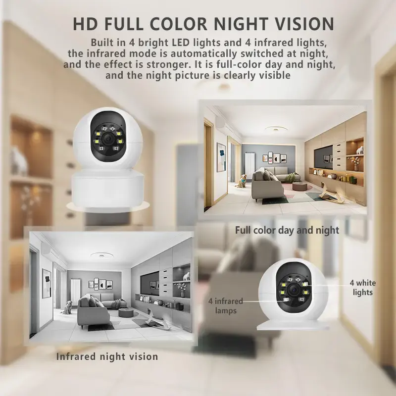 La cámara WiFi es fácil de operar y admite almacenamiento en la nube. Admite Intercomunicador de Voz Bidireccional para Lograr un Color Completo en la Noche