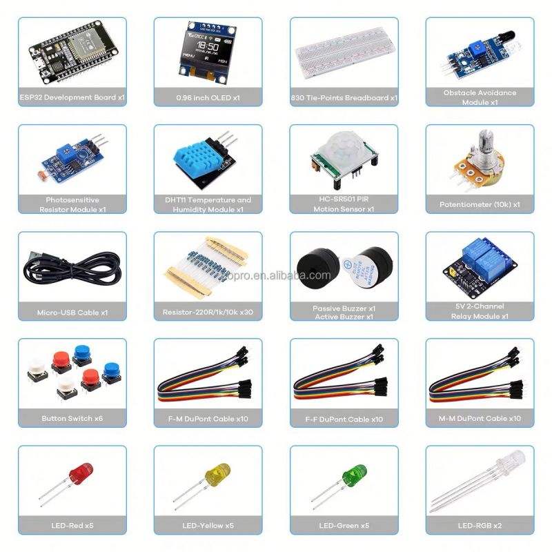 Kit de Inicio para Desarrollo de IoT con WiFi, Kit Educativo para ESP32 ESP-32S, Kit Básico de Inicio para ESP32