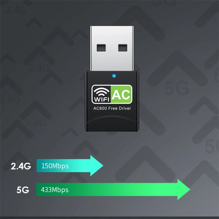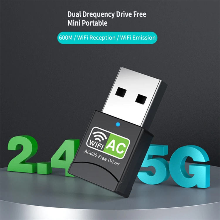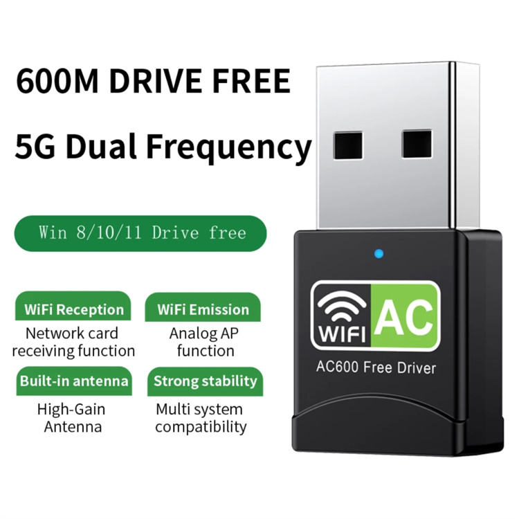 Adaptador de Red WiFi de Doble Banda 2.4GHz+5Ghz, Sin Controladores, Chip Realtek RTL8811CU, Tarjeta de Red Inalámbrica Mini USB de 600Mbps