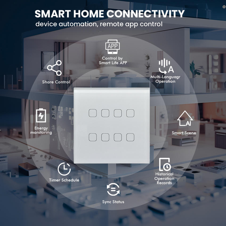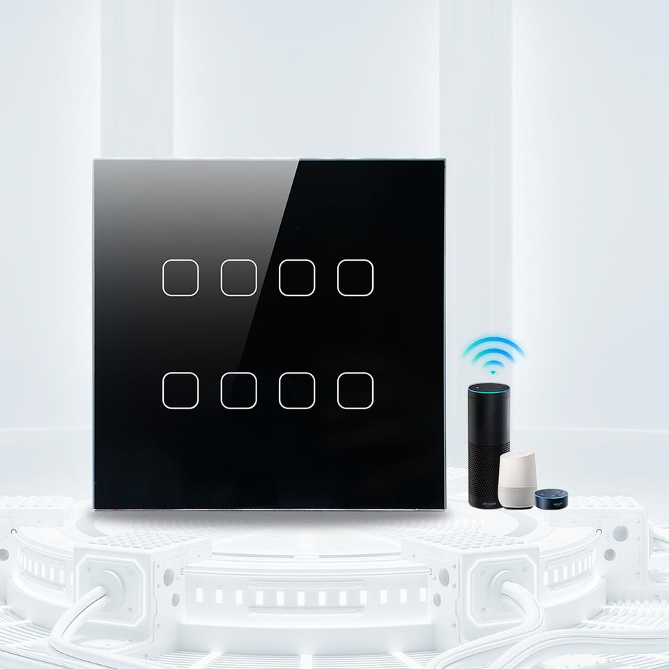 WiFi Smart Touch Switch 4/6/8 Channel Remote Timer Control App Voice Google Home Alexa Compatible 118x118mm