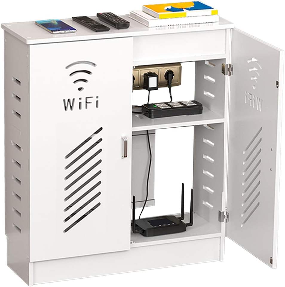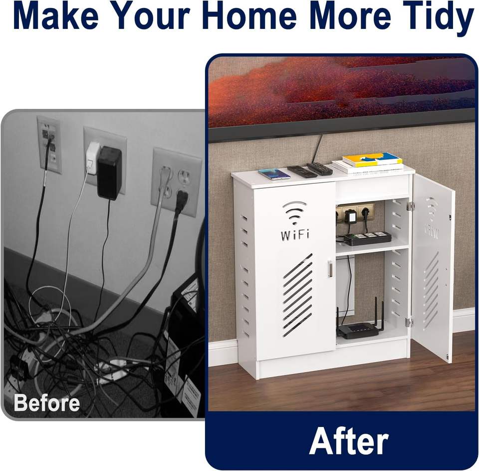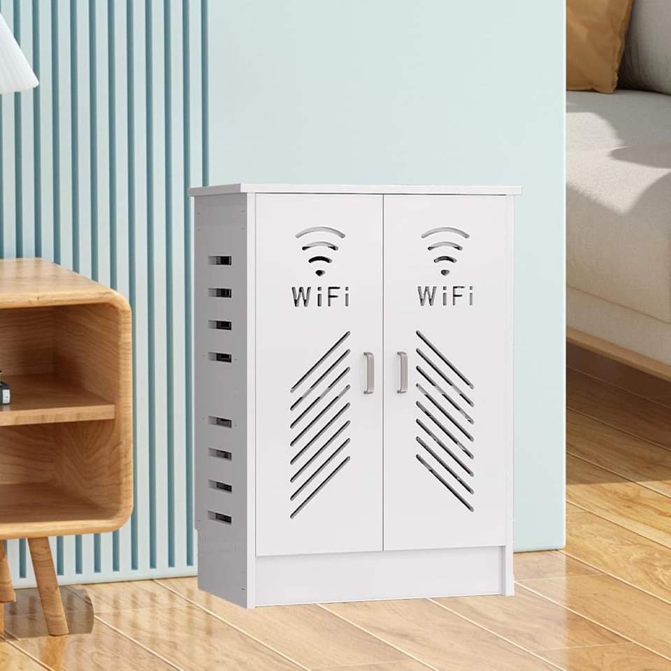 Mueble de Almacenamiento WiFi, Caja Decorativa para Router de Pie, Organizador Ocultador de Cables y Regletas Eléctricas