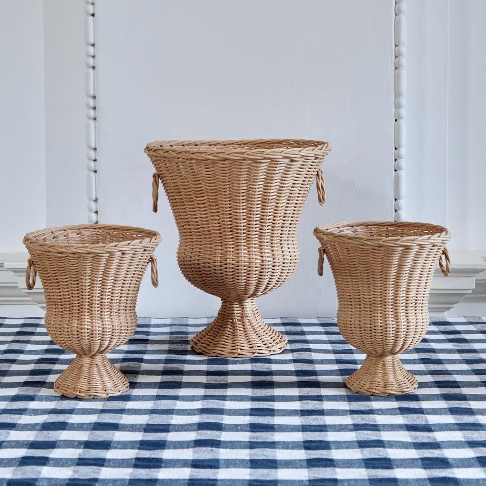Jarrón de urna de Pedestal de ratán polivinílico de mimbre, decoración para exteriores de boda, jarrón de decoración del hogar tejido a mano, MOQ bajo del fabricante de Vietnam