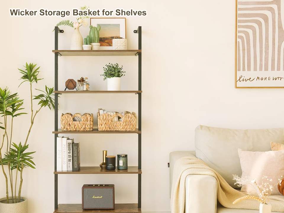 Cestas de almacenamiento de mimbre, cesta de mimbre para estantes Organización de bordes festoneados con asa Cestas de almacenamiento de jacinto de agua natural