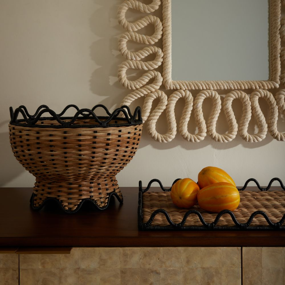 Nombre:Tazón de mimbre tejido con conchas de mar Tamaño: D15 x H11 pulgadas