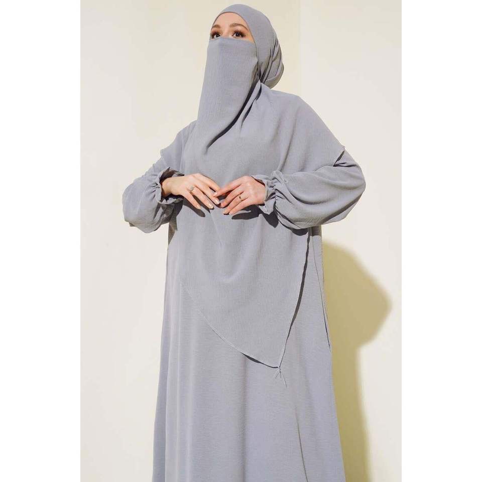 Abaya ancha con Velo Gris