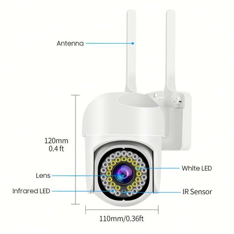 Humanos de seguimiento de movimiento, Visión nocturna, Detección de movimiento, Impermeable / a prueba de mal tiempo, Construido-En sirena, PAN-TILT, De Audio de dos víasCaracterísticas especiales