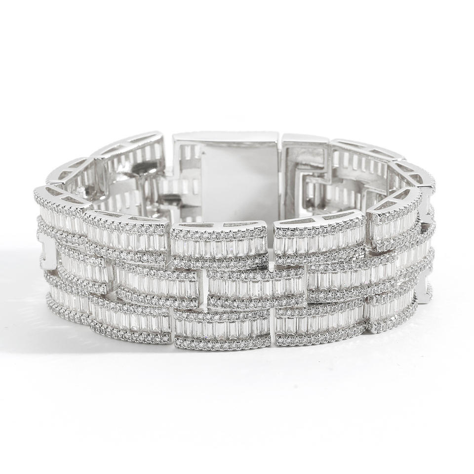 Pulsera ancha con cierre de resorte, brazalete de reloj con circonitas en forma de T, joyería de pulsera para hombre, collar de moda Tanjing Lijing