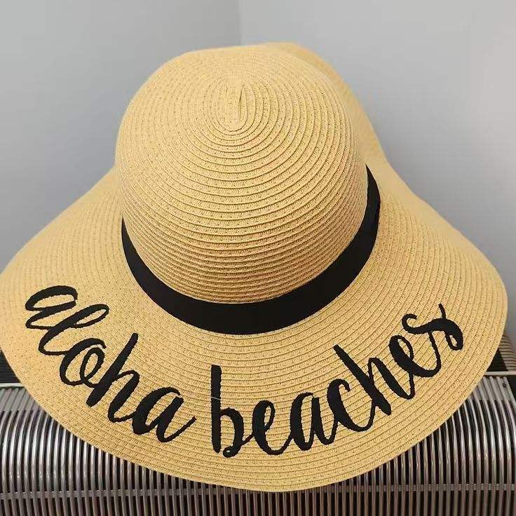Sombreros de paja de protección solar de ala ancha, sombrero de cubo de novia con letras personalizadas, sombrero de playa de verano portátil plegable