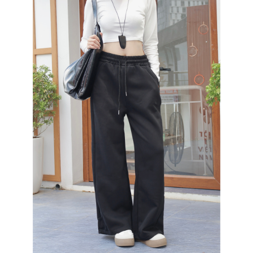 Pantalones de mujer de lana de pierna ancha con cordón elástico de cintura alta detalle de costura resaltada SUMINISTRO DE Vietnam