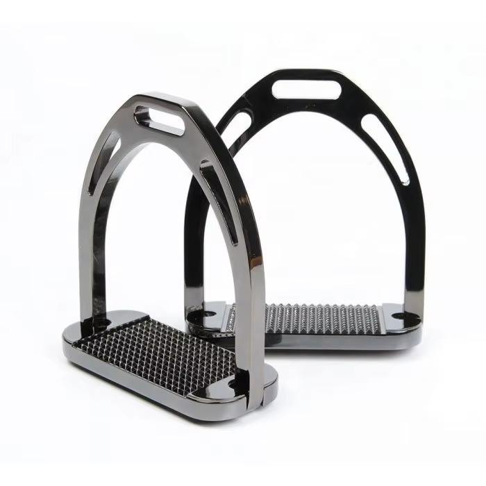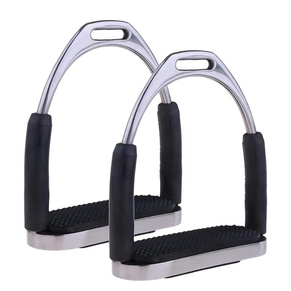 Estribos de equitación de agarre seguro de banda de rodadura ancha en acero pulido para pantalones de control y equitación de resistencia