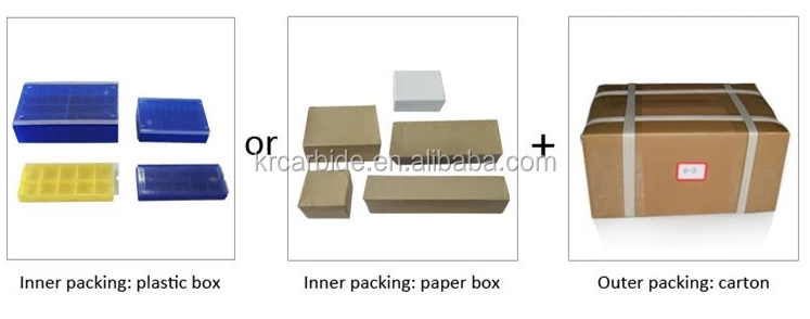 Detalles del embalaje:carbide turning insert packing with Plastic box & Paper box first and then transport by Carton or wooden box