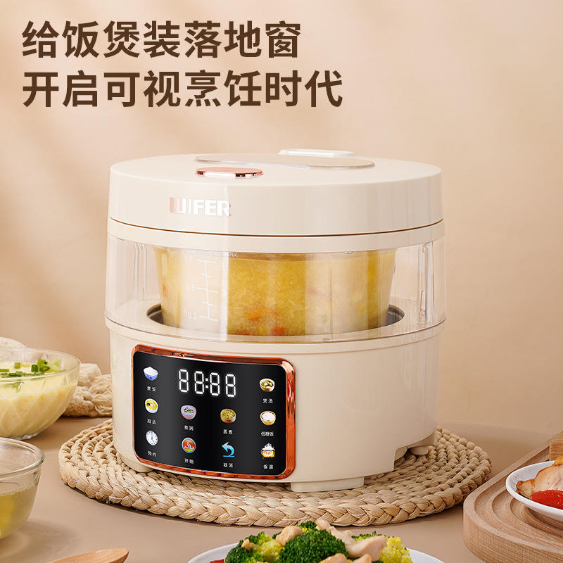 Olla Arrocera Eléctrica Wifer Visual de 2.5L Multiusos con Cesta para Cocinar al Vapor, Carcasa de Plástico en Forma de Cilindro