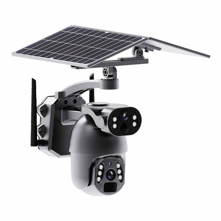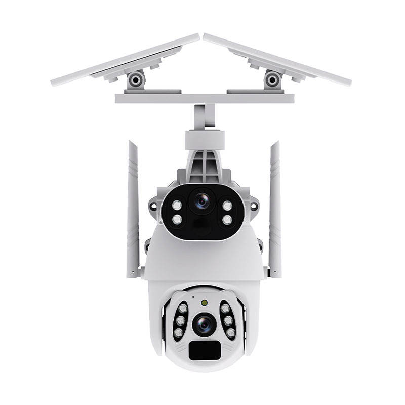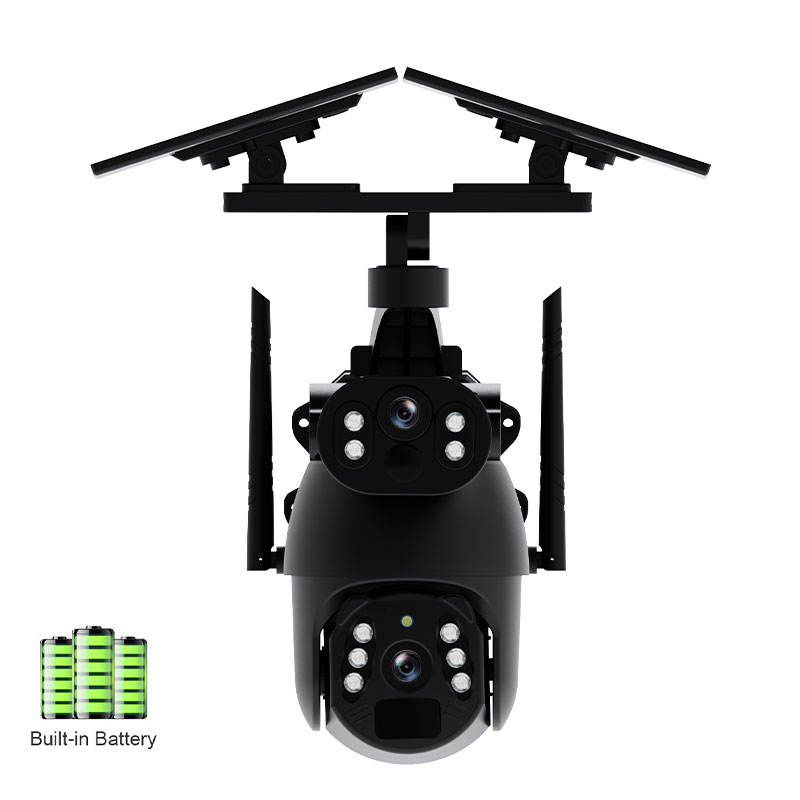 Cámara de seguridad para el hogar Wifi Domo de doble lente de 6MP con tarjeta SIM 4G 2 paneles solares alimentados por batería 2 pantallas Cámara CCTV impermeable
