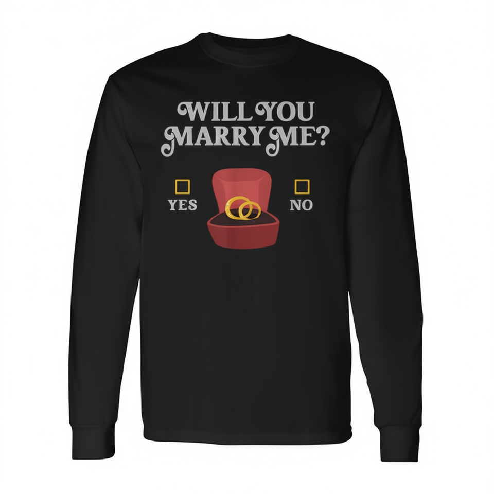 Camiseta de manga larga con estampado de anillos de propuesta de matrimonio para él, regalo de compromiso