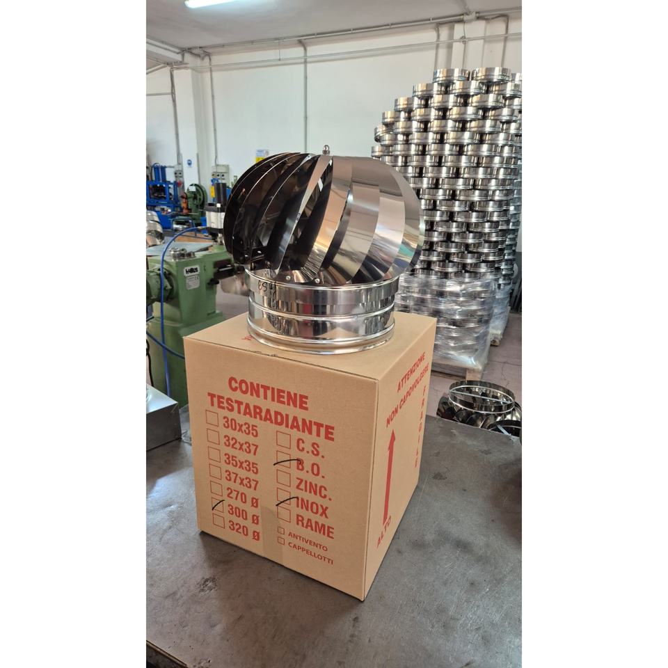 Campana de Chimenea Giratoria Impulsada por el Viento, Acero Inoxidable 304, Certificación KIWA, Diseño Industrial, Hecho en Italia, para Extracción de Gases de Combustión