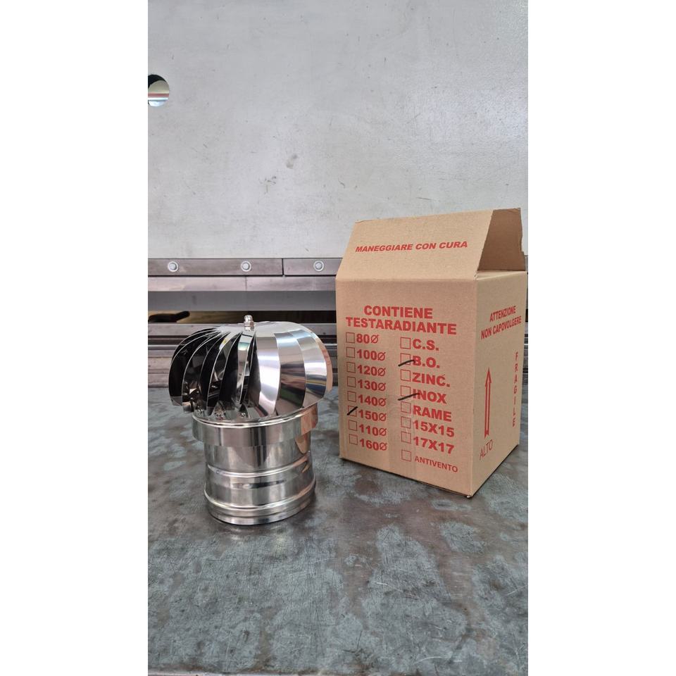 Campana de Chimenea Giratoria Impulsada por el Viento, Acero Inoxidable 304, Certificación KIWA, Diseño Industrial, Hecho en Italia, para Extracción de Gases de Combustión