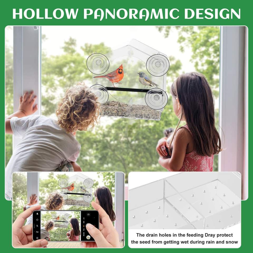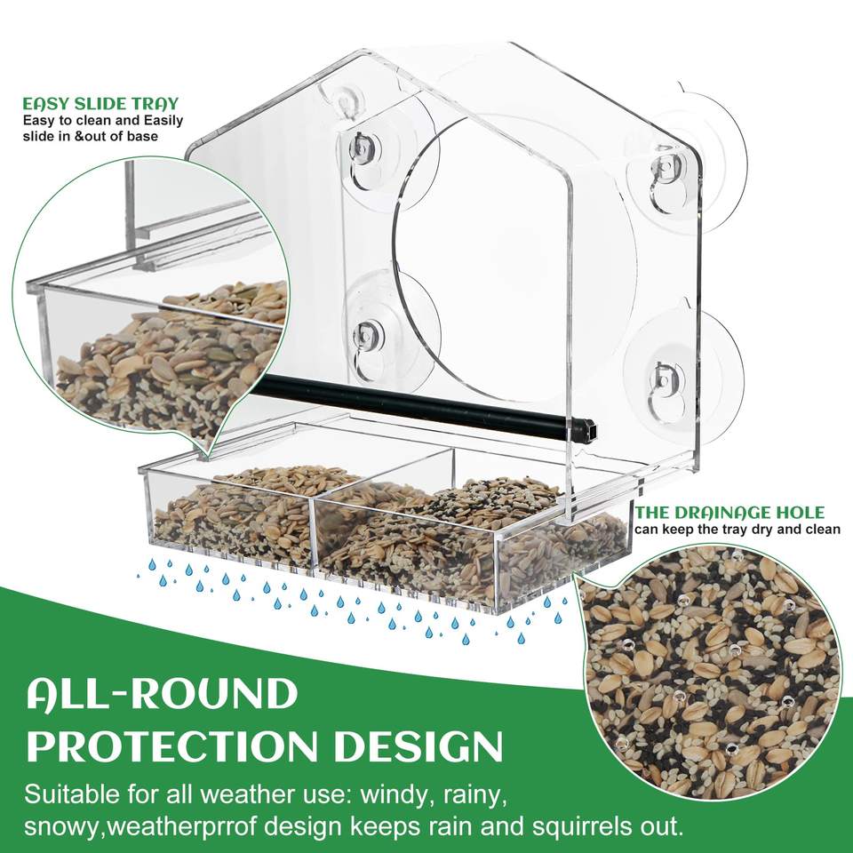 Comedero para pájaros con ventana con 4 ventosas extrafuertes, Casa Grande para pájaros al aire libre para cardenales Bluebird Chickadees, etc.