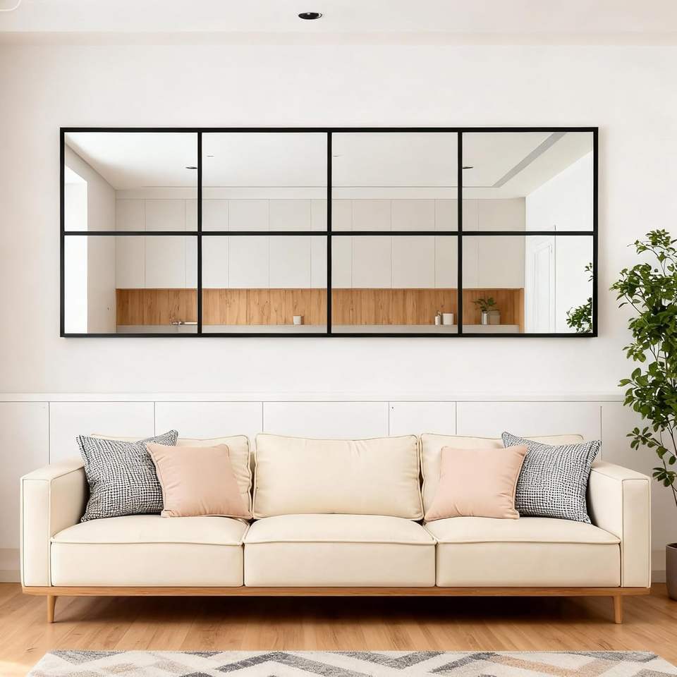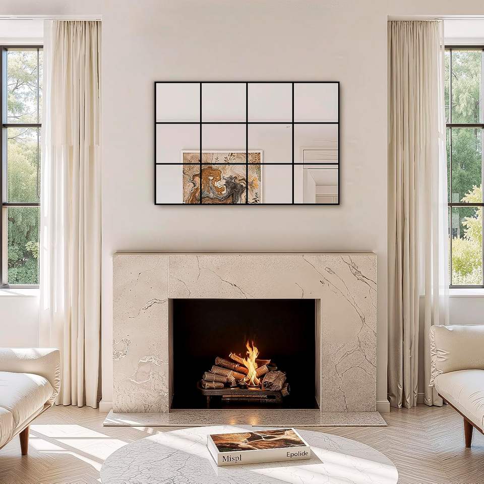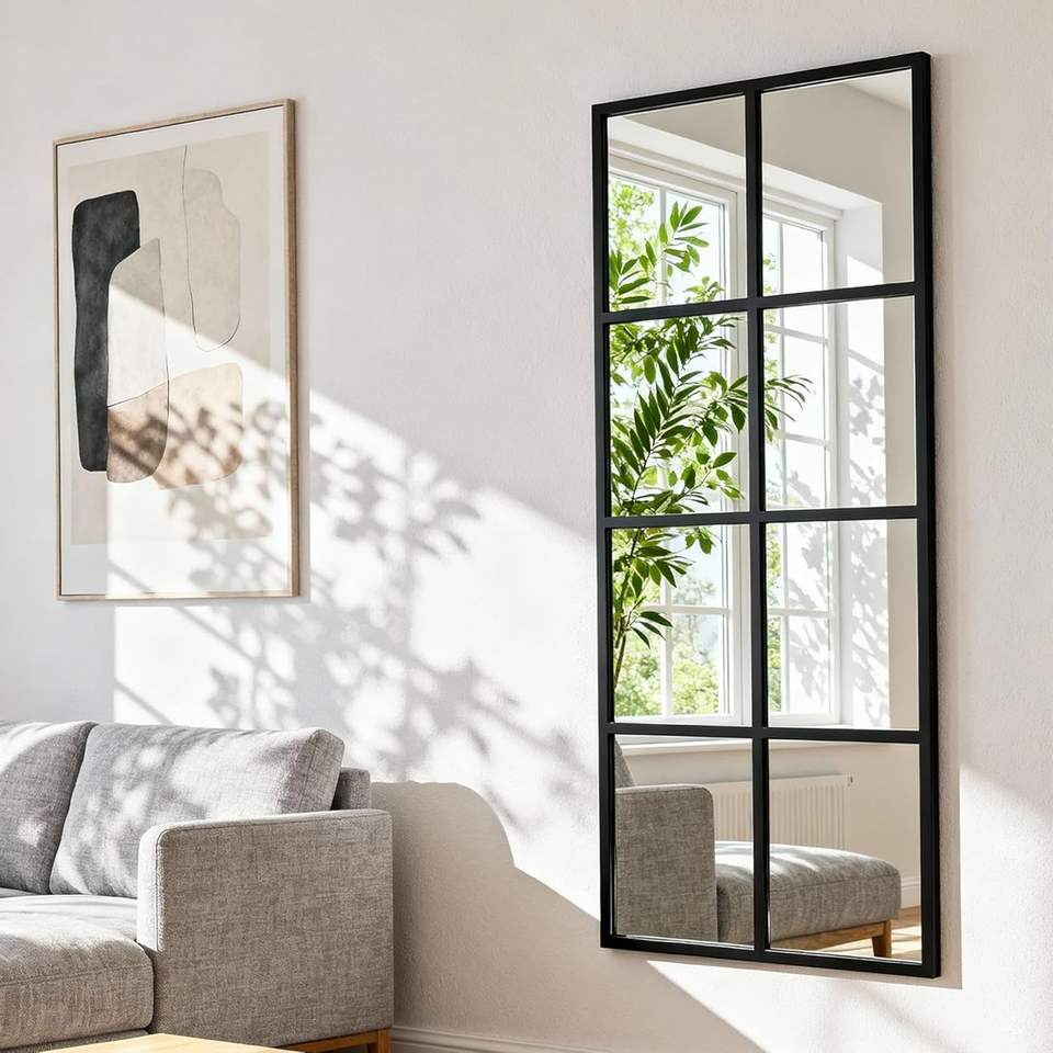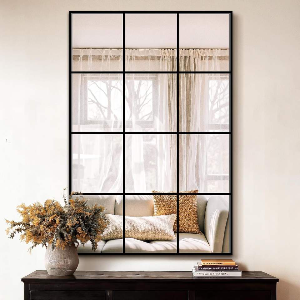 Espejo de Pared con Marco de Ventana Estilo Rústico, Espejo Decorativo de Cuerpo Entero para Colgar o Apoyar en Sala de Estar, Dormitorio y Entrada