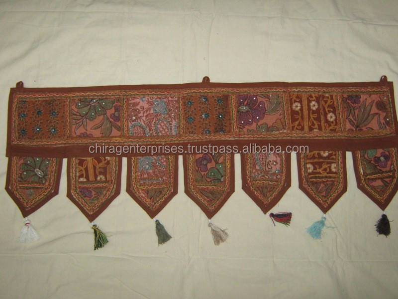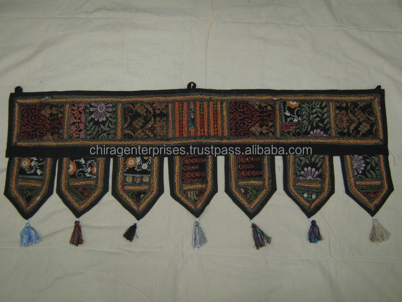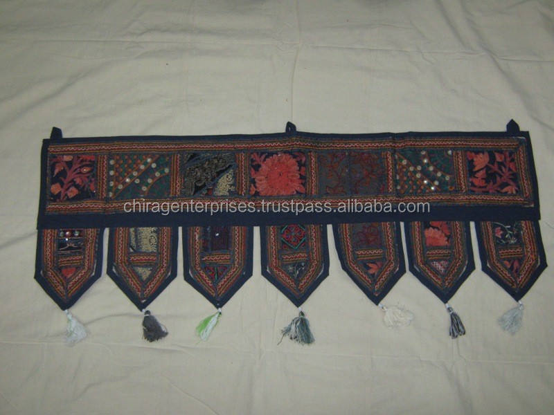 Cortina Decorativa para Ventana, Puerta o Pared, Estilo Indio, de Algodón Vintage, Bordado Multicolor, con Espejo